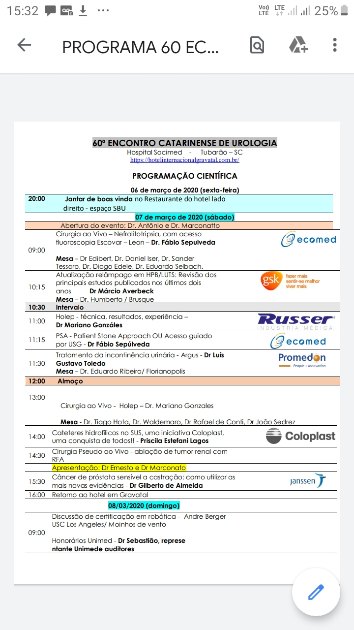 Segue em anexo a programação cientifica logo as mesas serão divulgadas após confirmação de todos componentes!