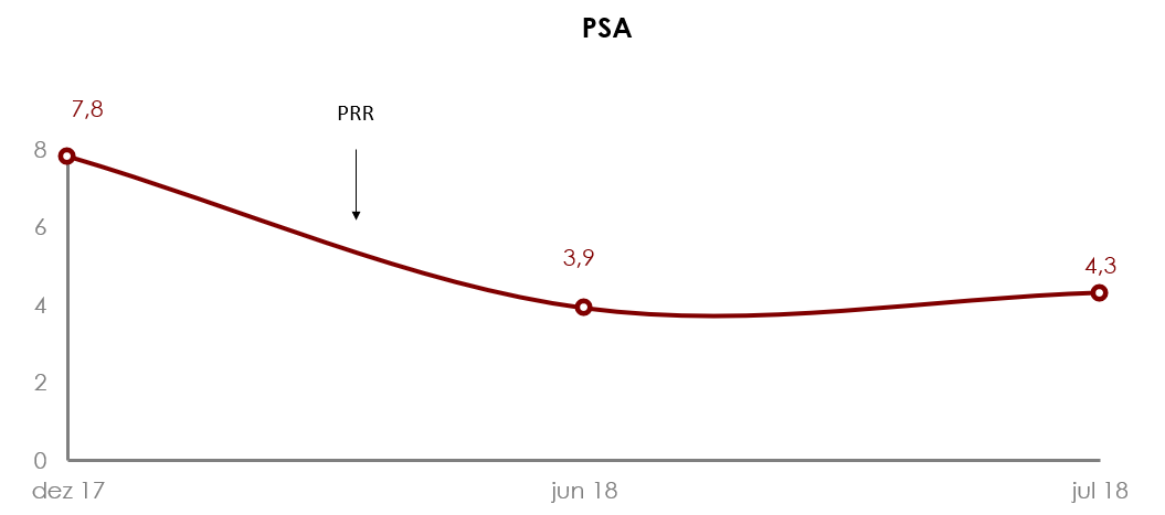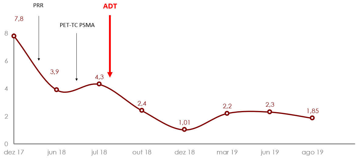 ♂, 74 anos (2018), ISUP 4 pT3b R0 pN1, PSA=4,3